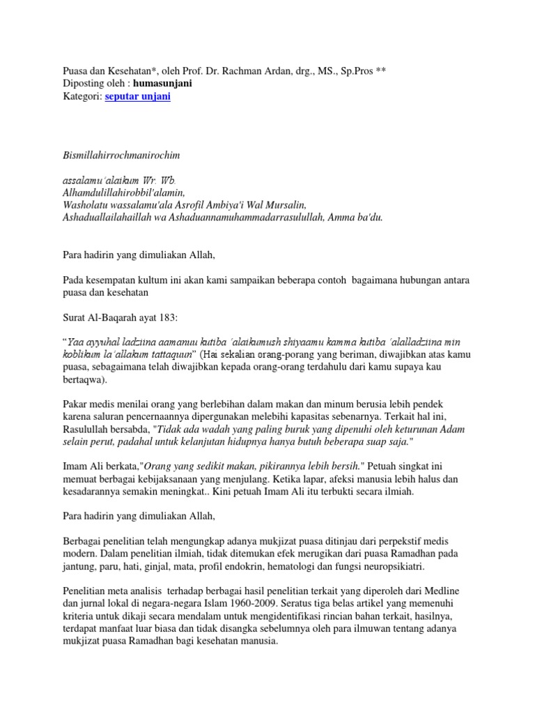 BAGUS) CONTOH TEKS/NASKAH KULTUM, PIDATO, CERAMAH SINGKAT MENYAMBUT SHAUM/PUASA BULAN RAMADHAN | Dokter Pengobatan Nabawi