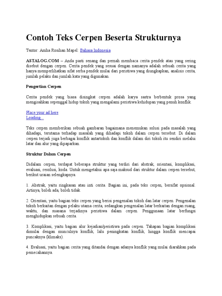 Contoh Cerpen Dan Strukturnya Brainly - Berbagi Struktur