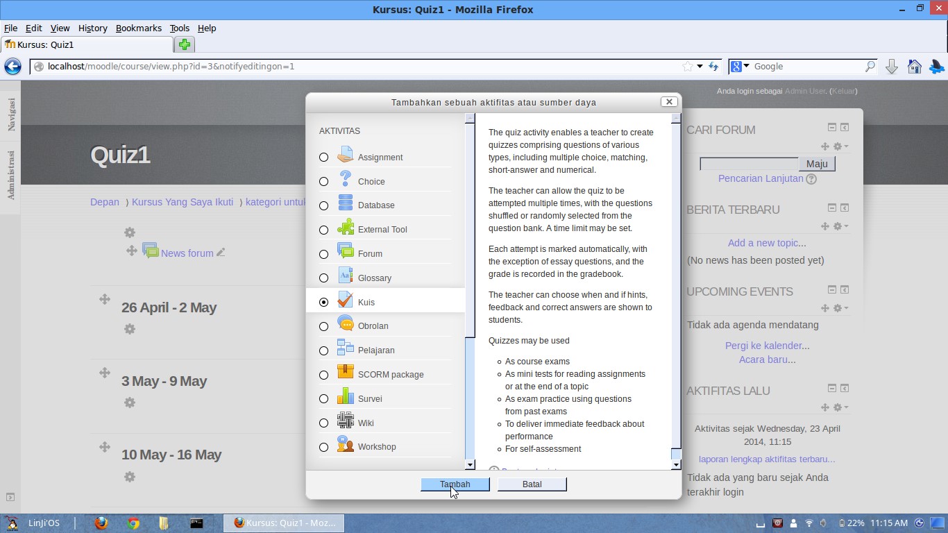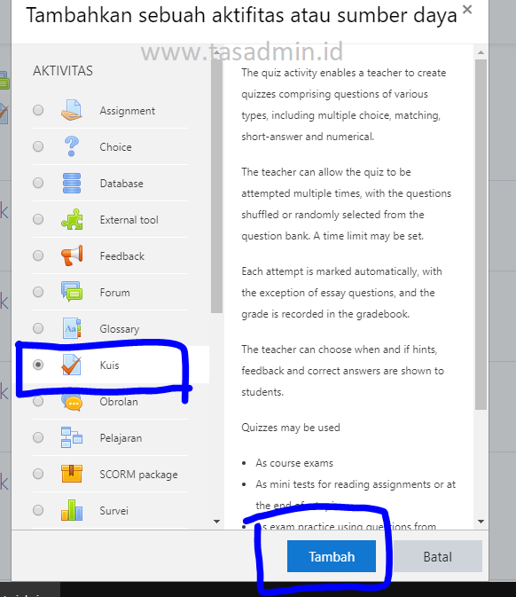 ALL ABOUT MOODLE: Membuat Kuis atau Ujian dari Suatu Materi Kursus atau Pelajaran di Moodle