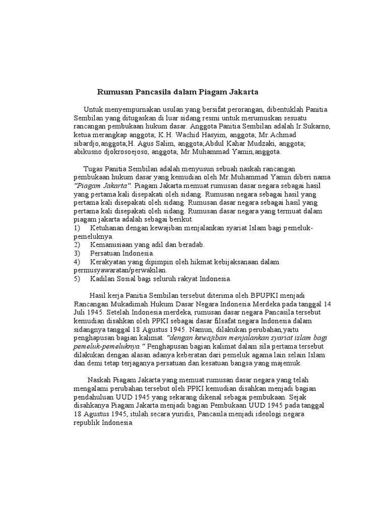 Mengapa rumusan pancasila dalam piagam jakarta perlu diadakan …