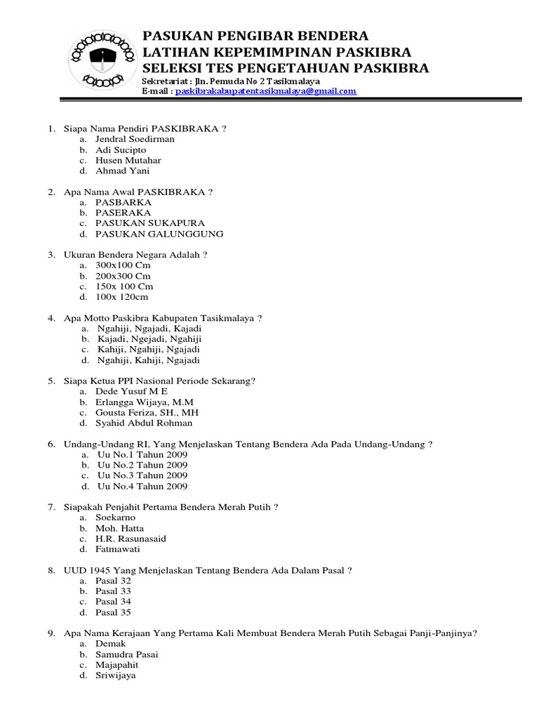 DOC) Kisi-kisi dan jawaban PASKIBRA | Rofie Rahman - Academia.edu