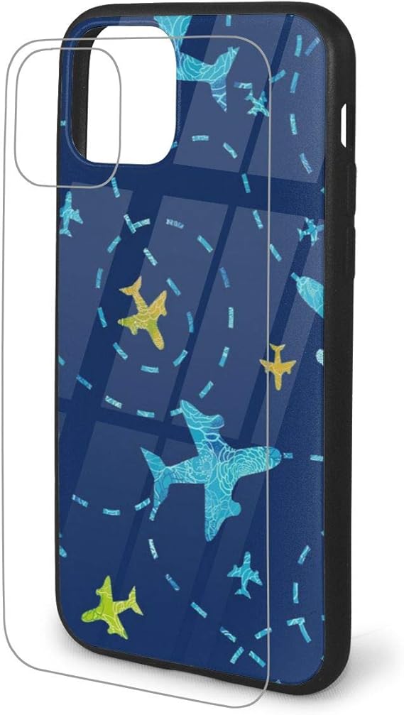 Amazon.com: Unique Design Nay Blue Airplane TPU Glass Phone Case Glossy Smooth Animal Protective Phone Cover for iPhone 11 Pro Max Case
