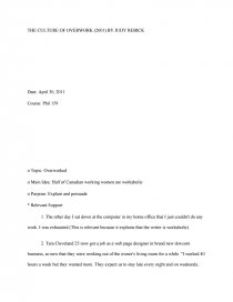 The Culture of Overwork” by Judy Rebick, Chapter 9 - Buy Online Essay