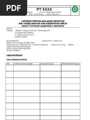 MONTHLY SAFETY REPORT (LAPORAN KESELAMATAN KERJA BULANAN) | SHE FOCUS