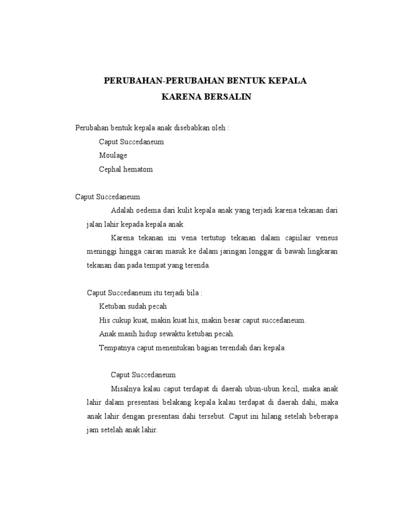 Perubahan Bentuk Kepala Karena Bersalin