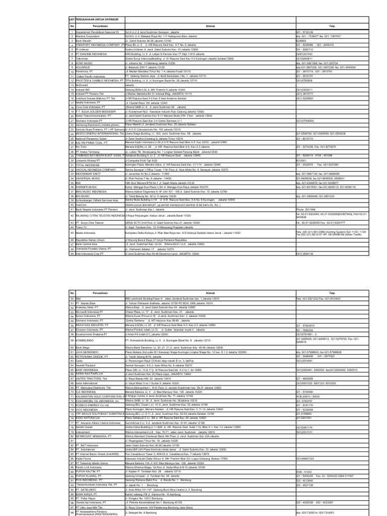 List perusahaan buat Sponsor