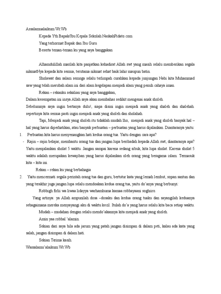 Contoh Pidato Anak Sholeh | Contoh Soal Dan Materi Pelajaran 3