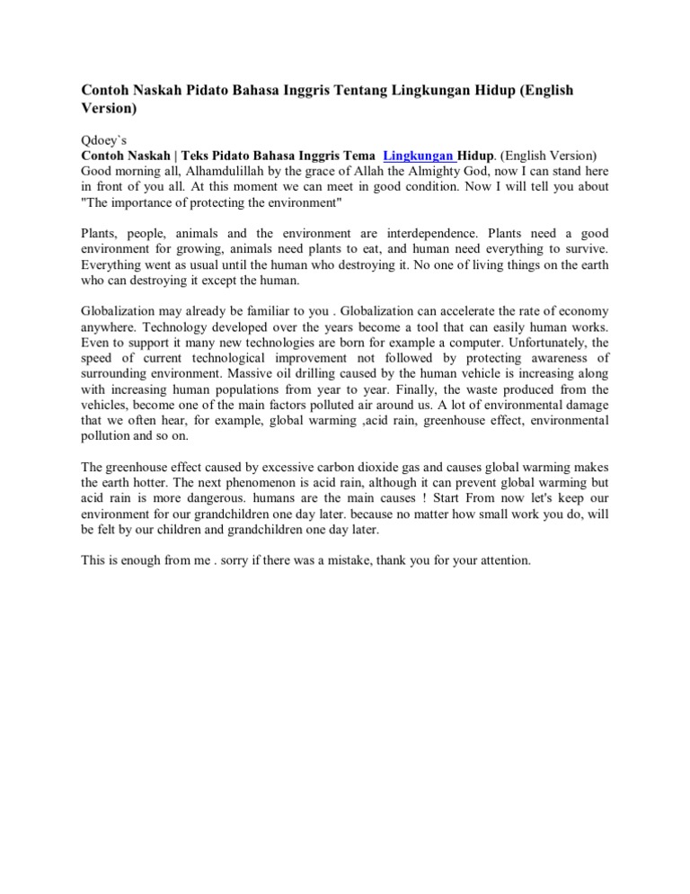 Materi pidato bahasa inggris tentang lingkungan juga sangat penting u…