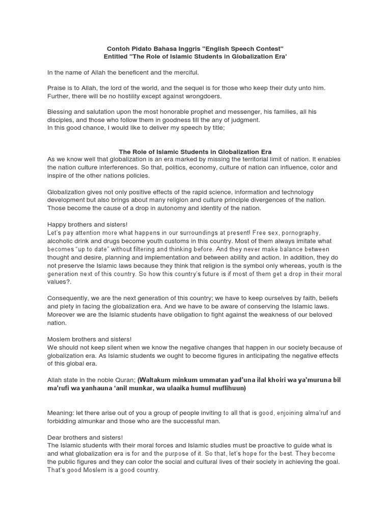 Pidato Bahasa Inggris :The Role of Islamic Students in Globalization Era - DATAGURU.WEB.ID