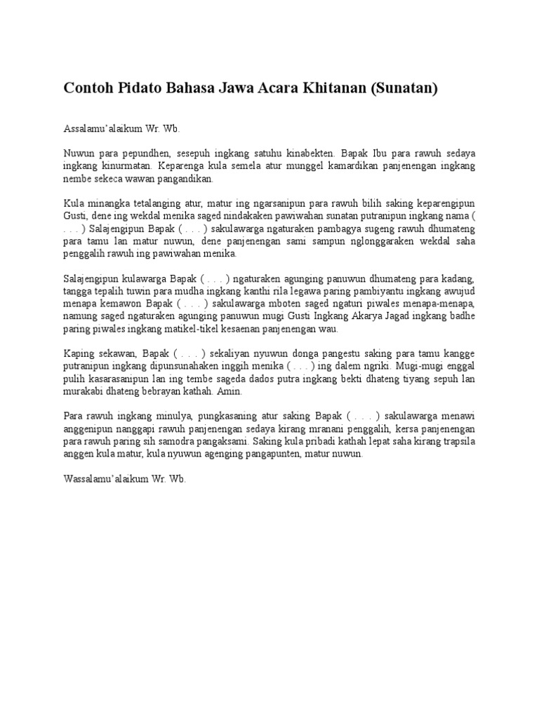 Contoh Pidato Bahasa Jawa Acara Khitanan