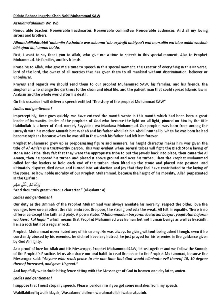 Contoh Pidato Bahasa Inggris Maulid Nabi Muhammad Saw - Gong Shim m