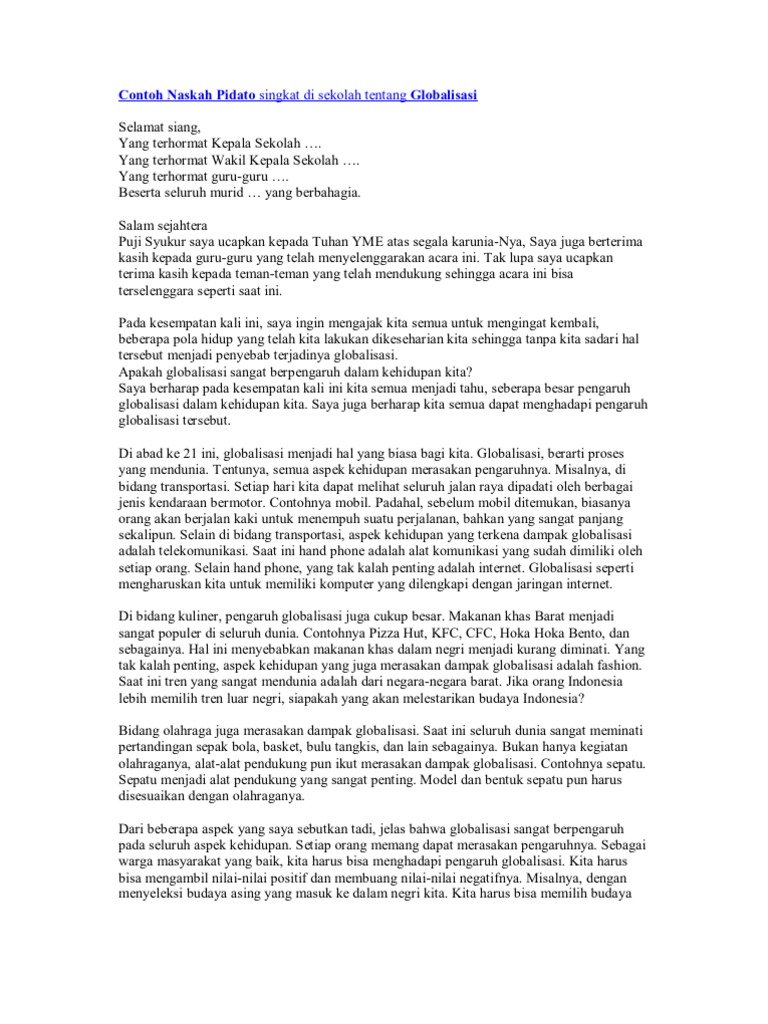 Contoh Naskah Pidato Singkat Di Sekolah Tentang Globalisasi