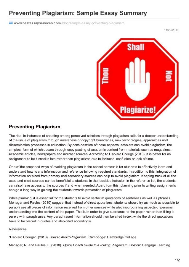 Bestessayservices.com- Preventing Plagiarism: Sample Essay