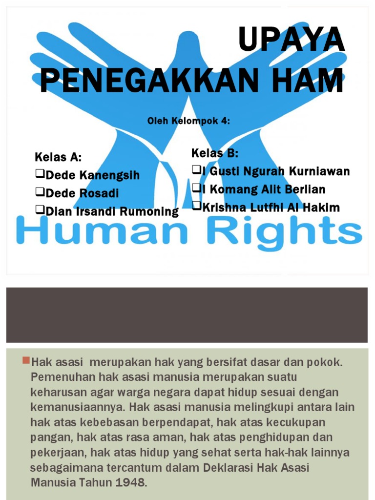 Upaya Penegakan Hak Asasi Manusia (HAM): Nama: - Ardian Rizky - Fadil Rahman - Mega Lestari Syofyan - Mutiara Chairani