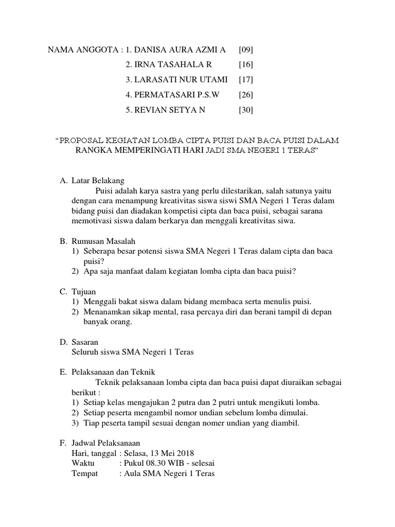 Contoh Proposal Lomba Baca Puisi - Any Formats