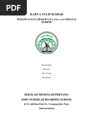 KARYA TULIS ILMIAH. PEMANFAATAN LIDAH BUAYA (Aloe vera) SEBAGAI KERIPIK. Disusun Oleh: Risnawati. Eska Yusnita. Esti Apriani - PDF Free Download