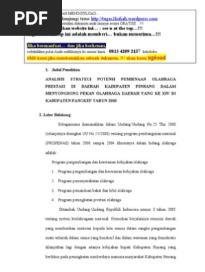 Proposal Tesis Olahraga Analisis Strategi Potensi Pembinaan Olahraga Prestasi Di Daerah Dalam Menyongsong Pekan Olahraga Daerah