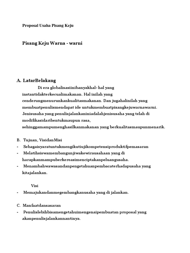 Contoh Proposal Usaha Pisang Keju Pdf - Berbagi Contoh Proposal