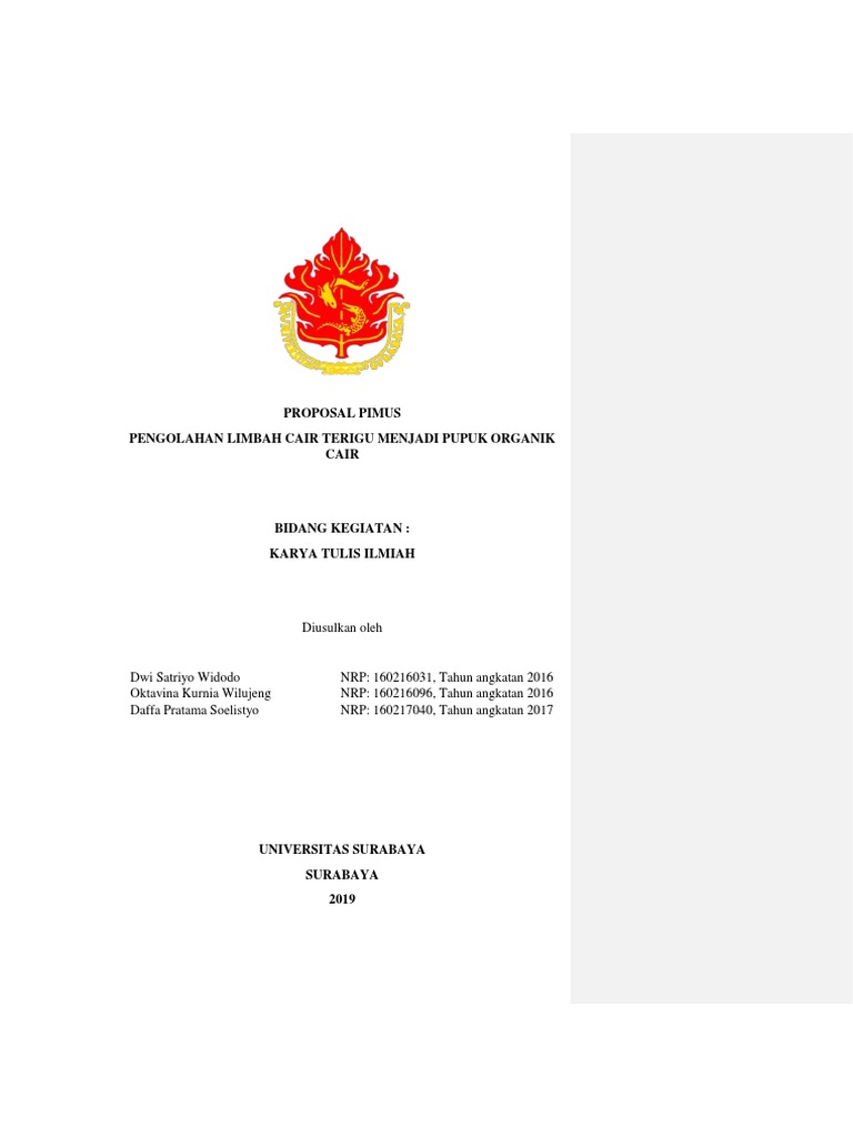 Proposal Pimus Pengolahan Limbah Cair Terigu Menjadi Pupuk Organik Cair
