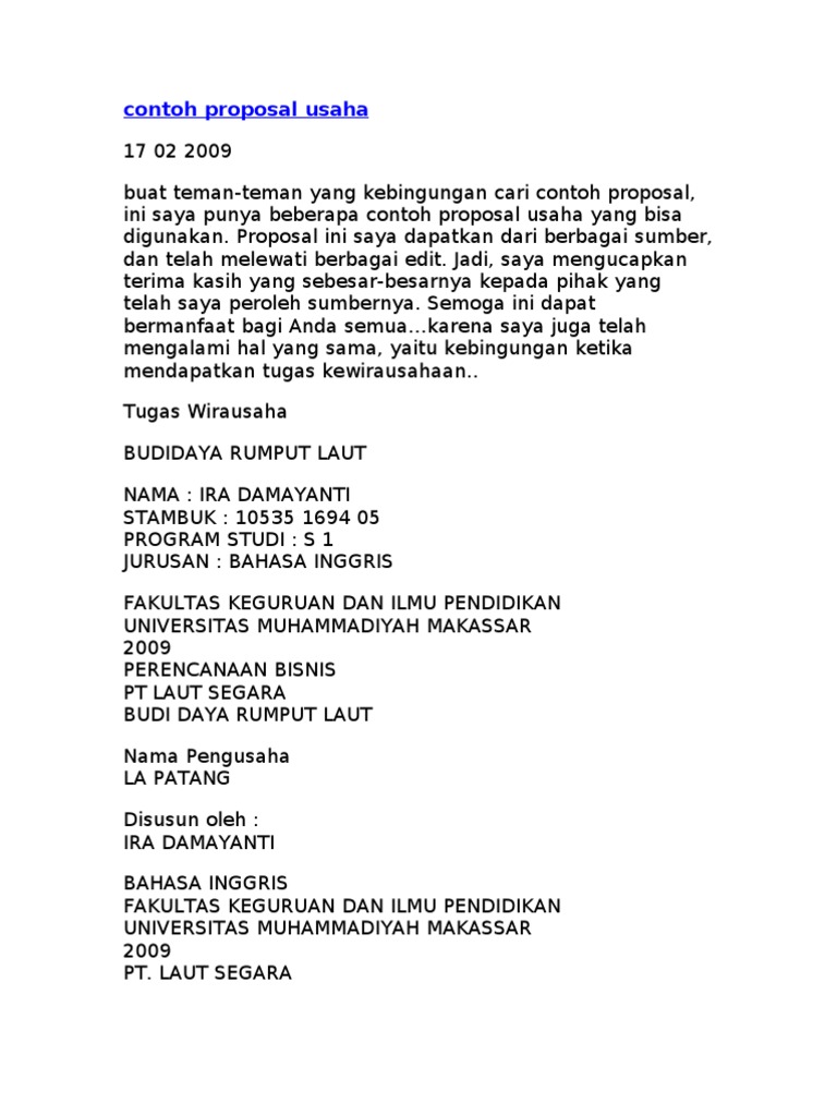 Koleksi Contoh Proposal Usaha Rumput Laut | Kumpulan Contoh Skripsi Hubungan