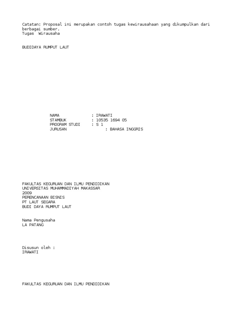 DOC) PROPOSAL KEWIRAUSAHAAN KERAGENAN RUMPUT LAUT | Novita tayuni - Academia.edu