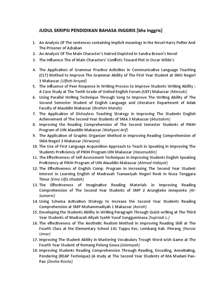 Judul Skripsi Pendidikan Bahasa Inggrisc - fasrask