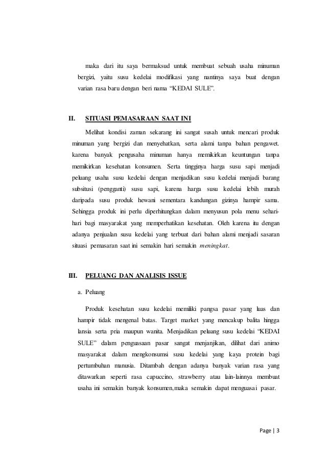 DOC) CONTOH RENCANA BISNIS : PERUSAHAAN SUSU KEDELAI " SARI ALAMI " | Putri Maretha Ramdhan - Academia.edu