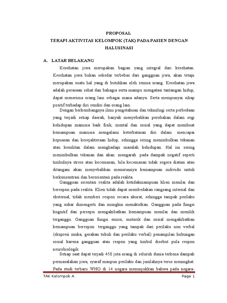 Contoh Proposal Terapi Aktivitas Kelompok Halusinasi - PDF Free Download