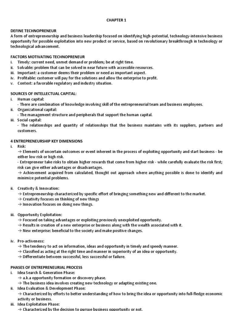 ENT600 - Technopreneurship, Short Note | Feasibility Study | Entrepreneurship