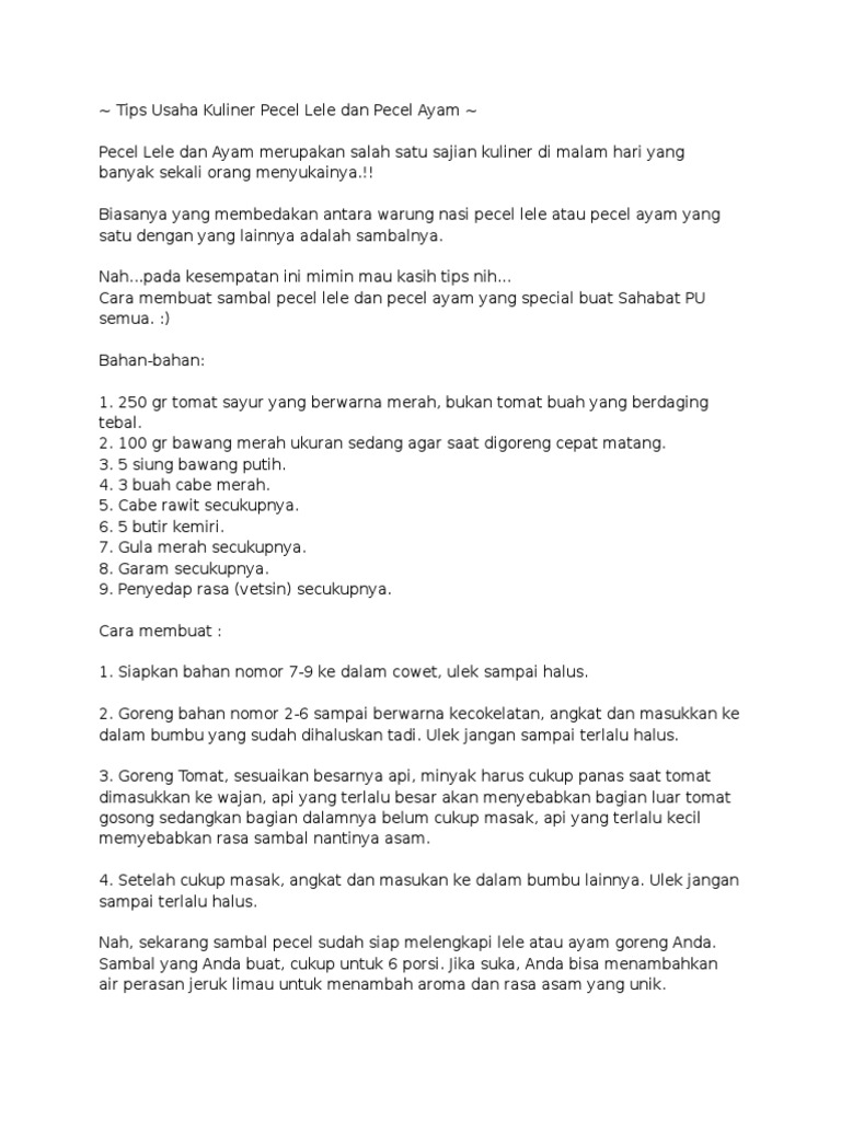 Tips Usaha Kuliner Pecel Lele Dan Pecel Ayam