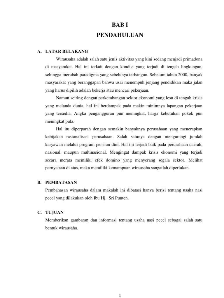 Kumpulan Contoh Proposal Usaha Warung Nasi Pecel | Kumpulan Contoh Skripsi Fakultas Ekonomi