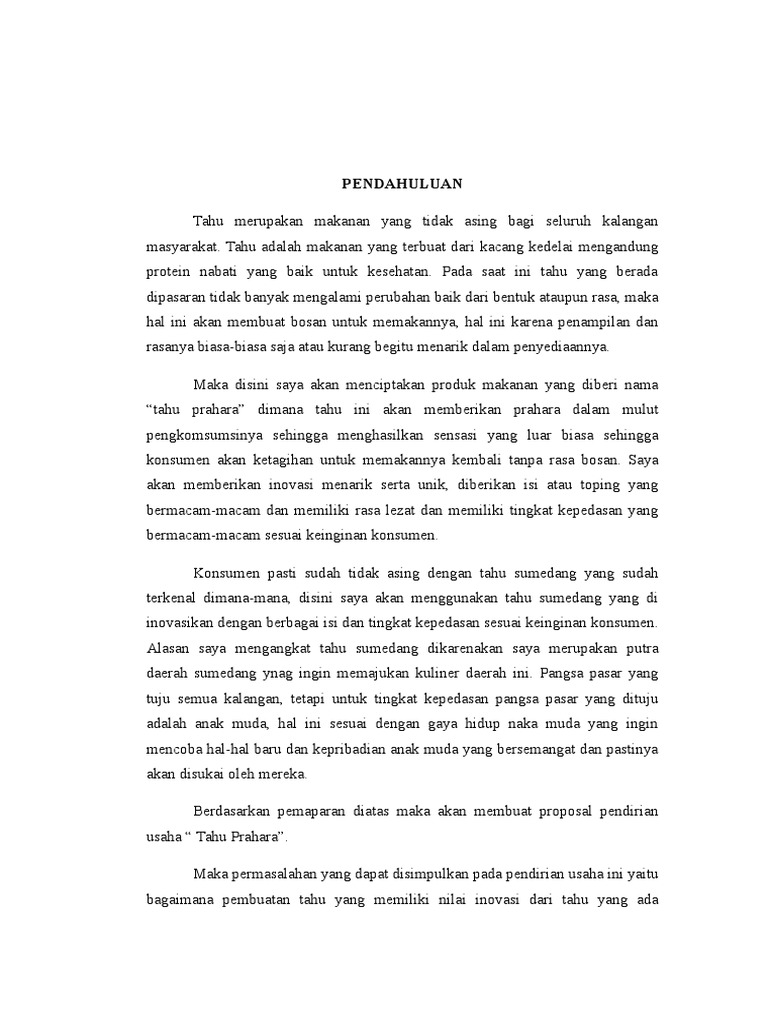 DOC) CONTOH PROPOSAL PENDIRIAN USAHA TAHU PEDAS | Calvin Mamoto …