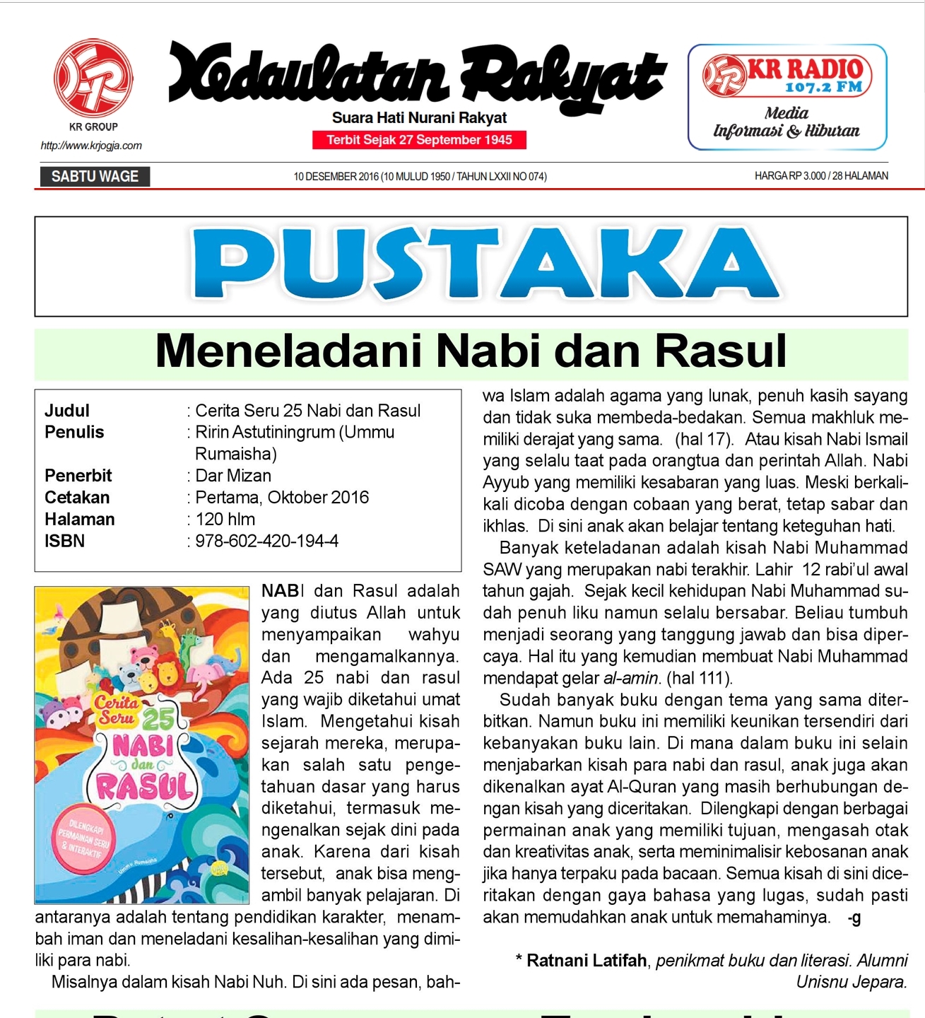 Coretan Kazuhana El Ratna Mida (Ratnani Latifah) : [Resensi] Meneladani Nabi dan Rasul