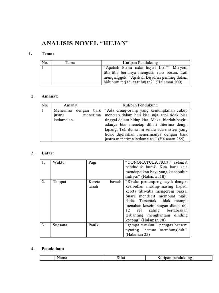 resensi bahasa.docx - Resensi Novel Hujan Karya Tere Liye Oleh David Benedictus Situmorang RESENSI NOVEL HUJAN Nama David Benedictus Situmorang Kelas XI | Course Hero