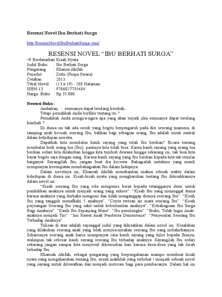 Contoh Resensi Novel Surga Untuk Ibuku - Kumpulan Contoh Makalah Doc Lengkap