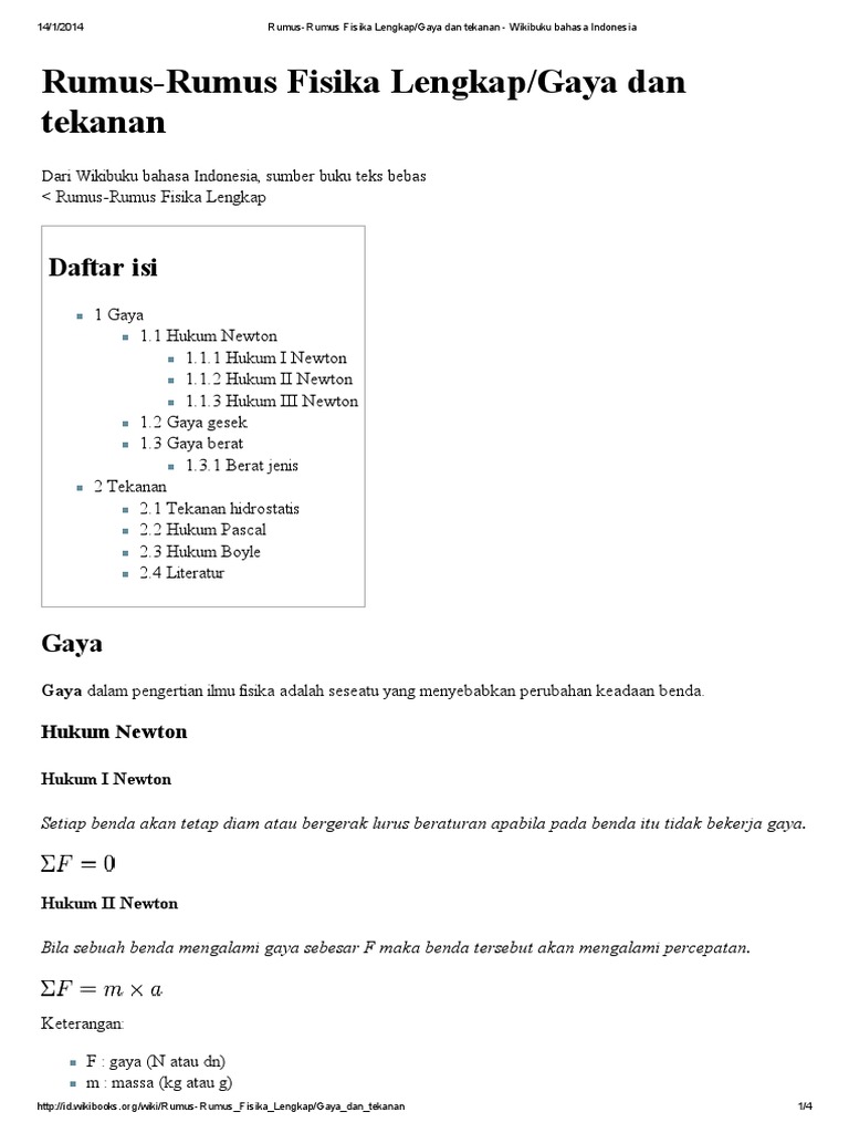 Rumus-Rumus Fisika Lengkap_Gaya Dan Tekanan - Wikibuku Bahasa Indonesia