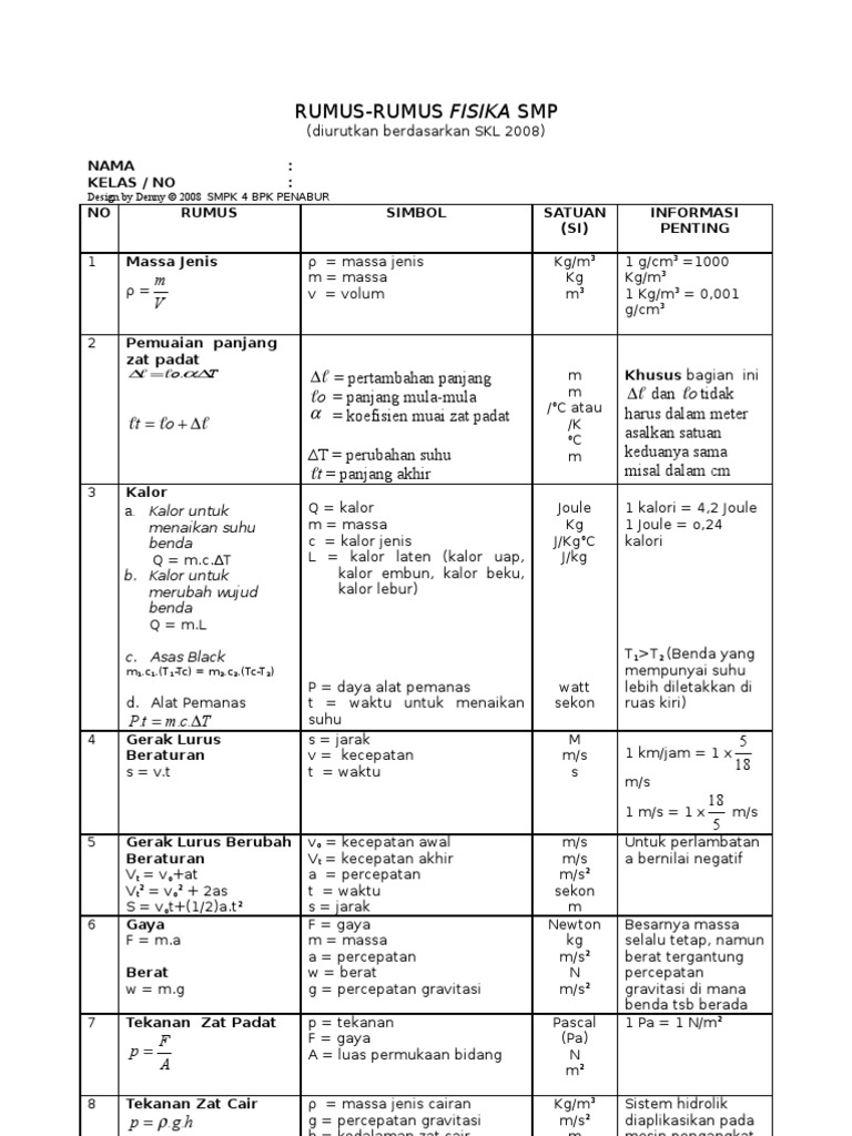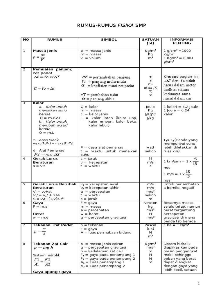 Kumpulan Rumus Fisika Smp Lengkap Dengan Keterangannya