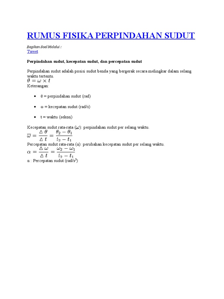 Rumus Fisika Perpindahan Sudut