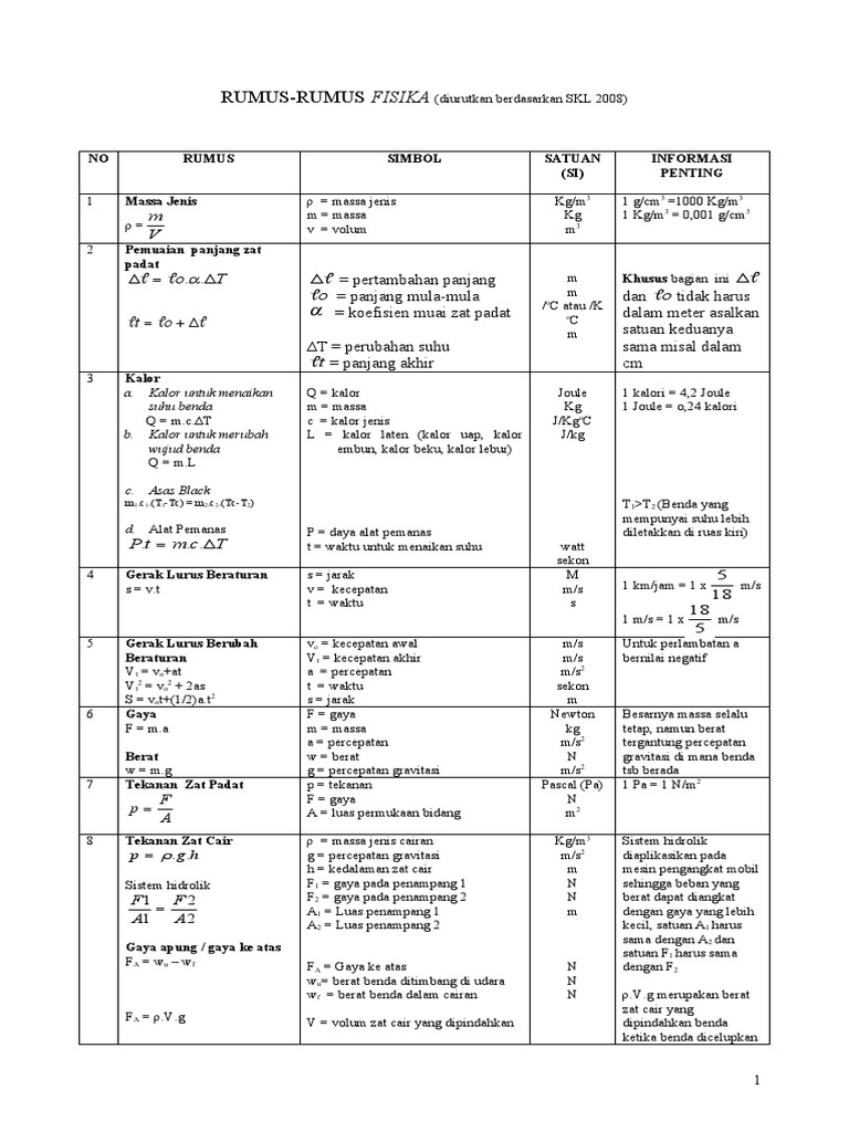 PDF) Rumus-Rumus Fisika Lengkap/Gaya dan tekanan 1 Rumus-Rumus Fisika Lengkap/Gaya dan tekanan | Asep Sholahuddin - Academia.edu