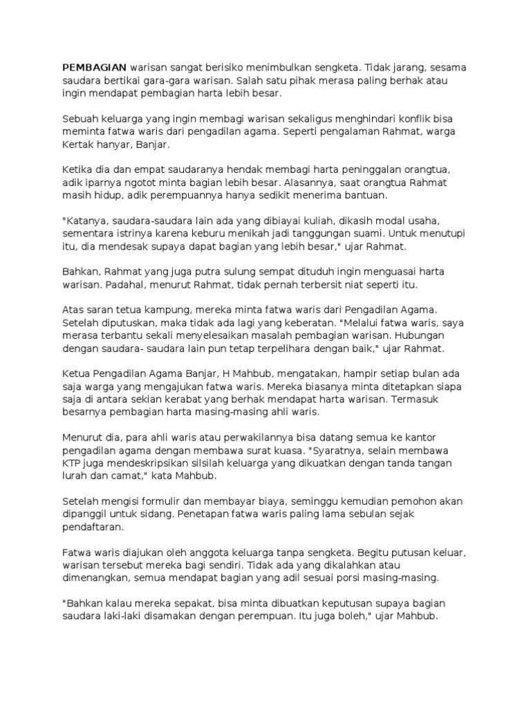 PEMBAGIAN Warisan Sangat Berisiko Menimbulkan Sengketa