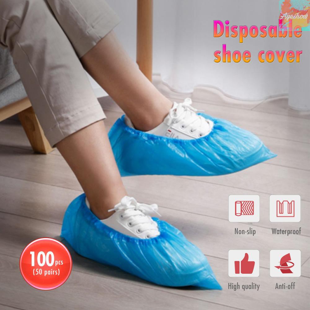 100 Pcs/bag Disposable Shoe Cover PE Plastic Household Thickened Shoe Cover Dustproof and Rainproof Shoe Cover | Shopee Singapore