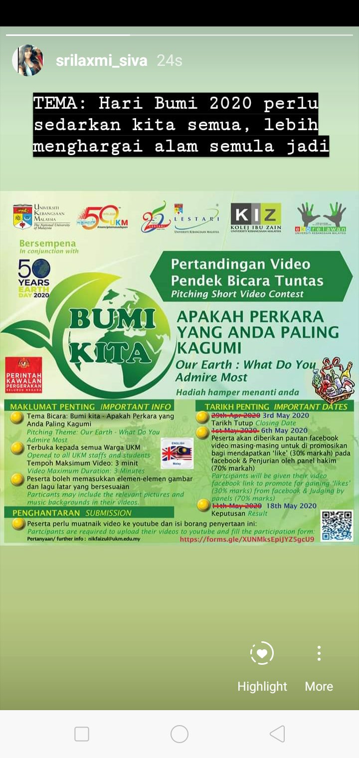 srilaxmi_siva on Twitter: “TEMA:Hari Bumi 2020 perlu sedarkan kita semua, lebih menghargai alam semula jadi #ekorelawanukm #22/4/2020… "