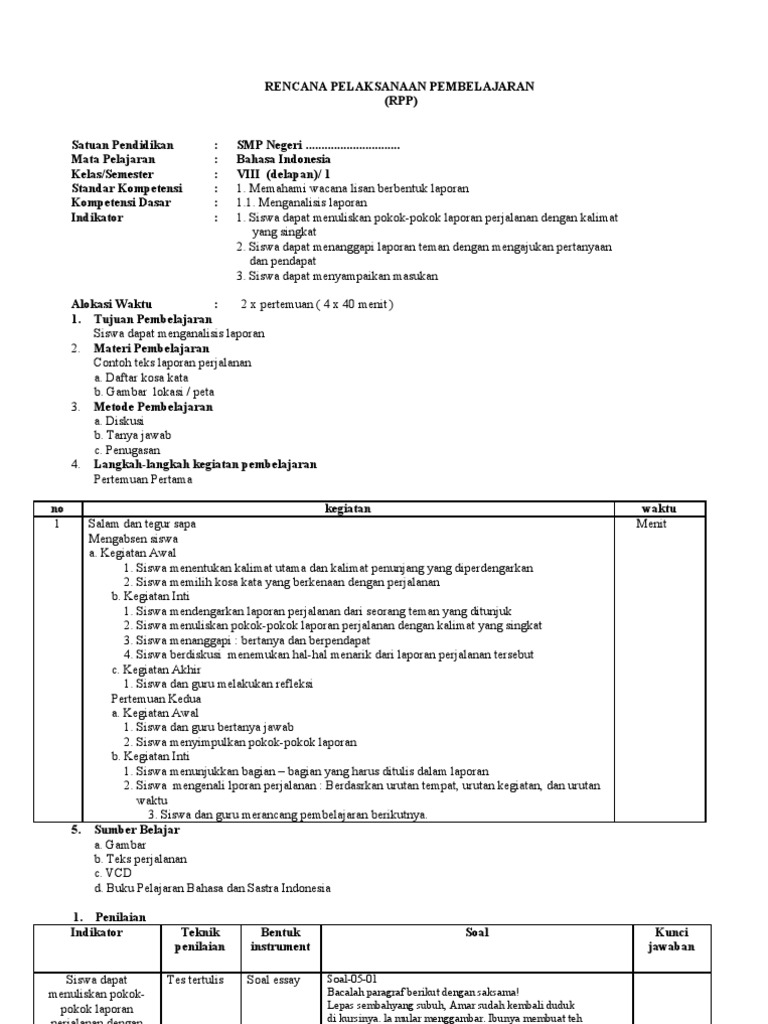 Rpp Bahasa Indonesia Smp Kelas 8