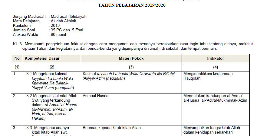 Kisi-Kisi UAMBD Akidah Akhlak MI 2020 - Harian Madrasah