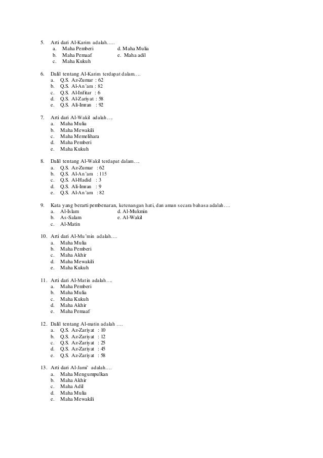 Contoh Soal Asmaul Husna Beserta Jawabannya - Contoh Soal Terbaru