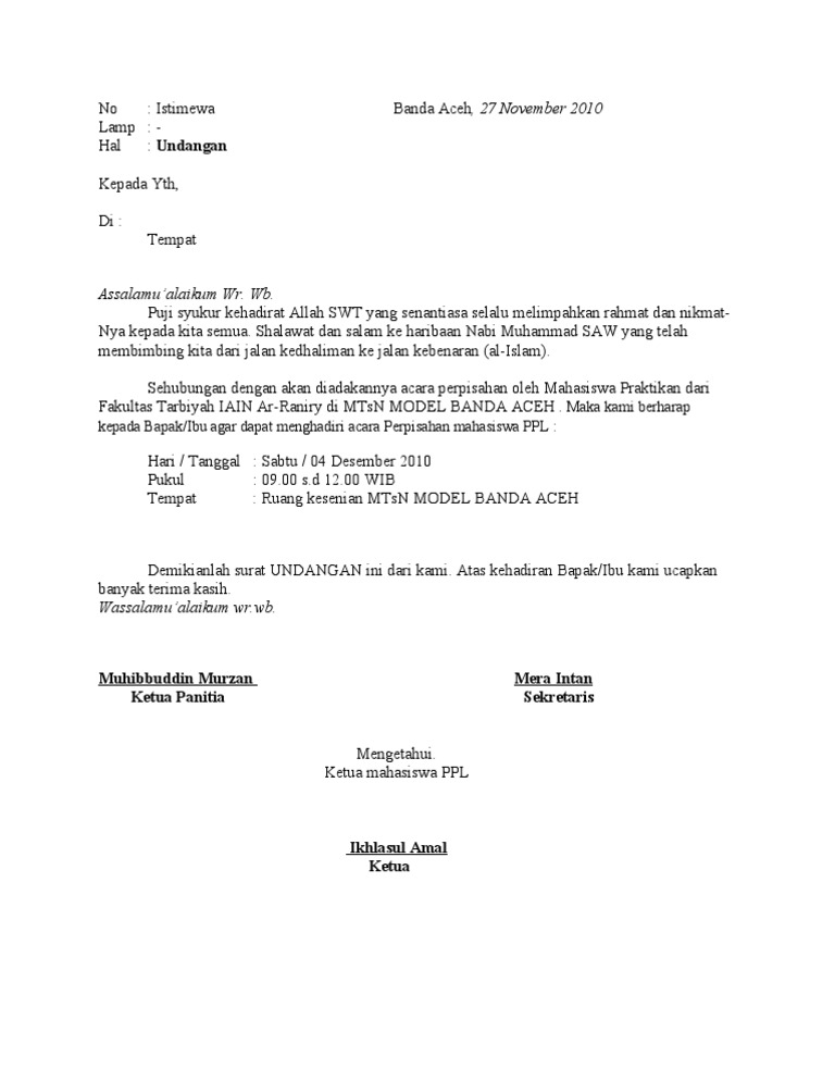 Contoh Surat Resmi Undangan Perpisahan Contoh Hu – Cute766