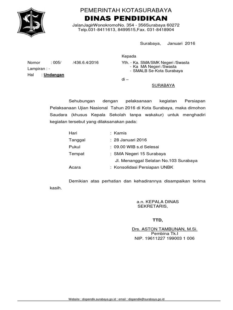 Contoh Surat Undangan Rapat Sekolah | Undangan, Sekolah, Surat