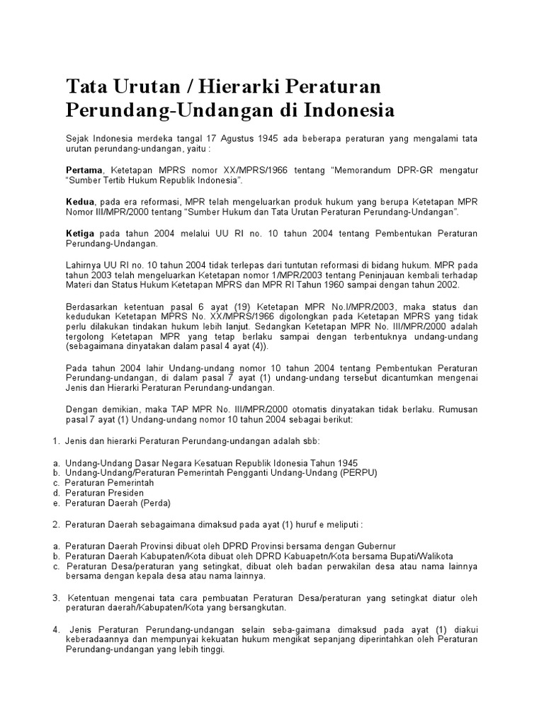 Tata Urutan Perundang Undangan Menurut Uu No 10 Tahun 2004