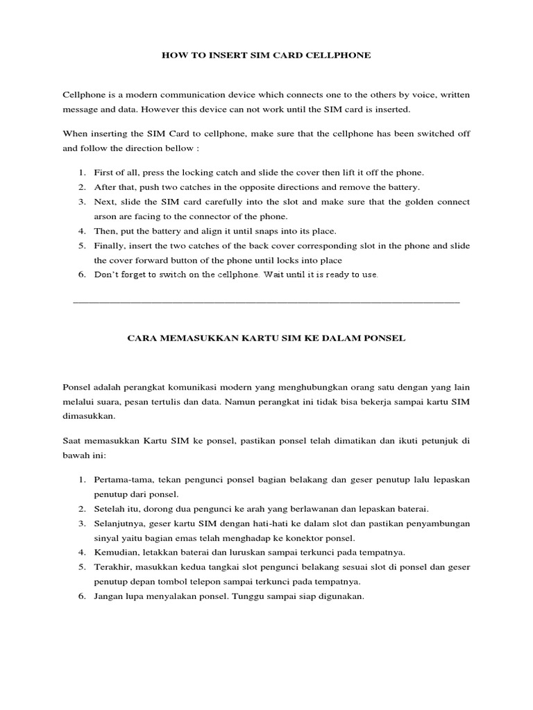 Example of Procedure Text: How to Install SIM Card to Cellphone | English Admin