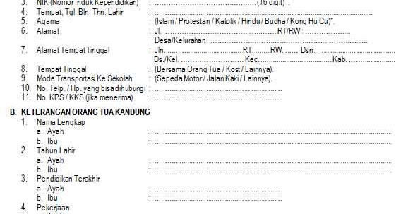 Contoh Formulir Pendaftaran Sekolah Lengkap TK, SD, SMP, SMA, DAN SMK